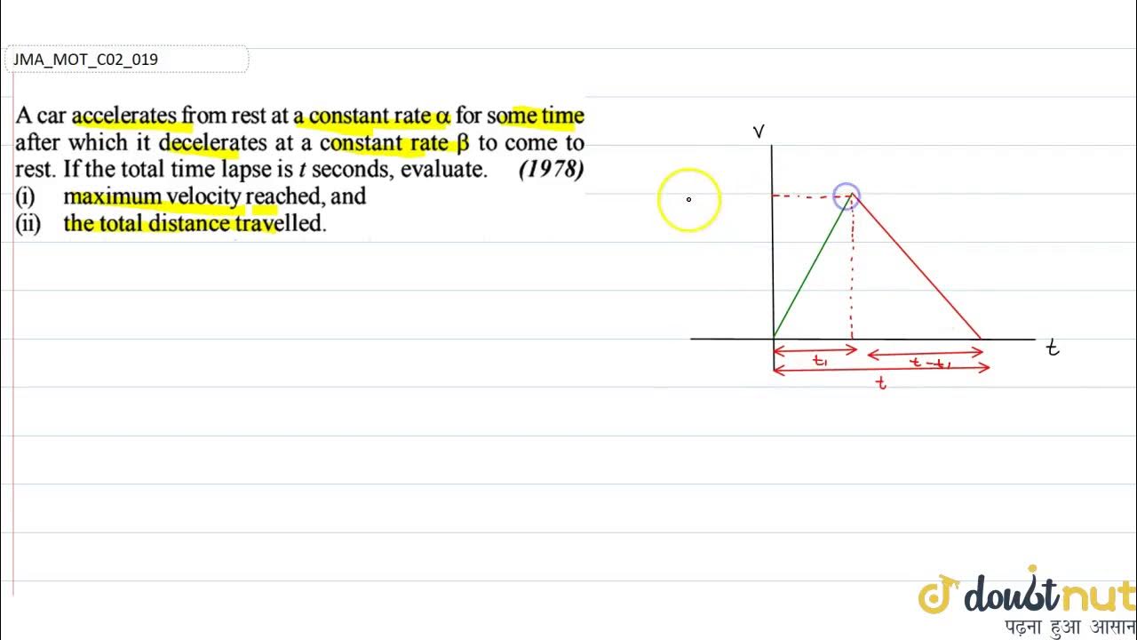 A Car Accelerates From Rest At A Constant Rate Alpha For Some Time After Which It Decelerates At A Constant Rate Beta To Come To Rest If The Total Time Elapsed Is